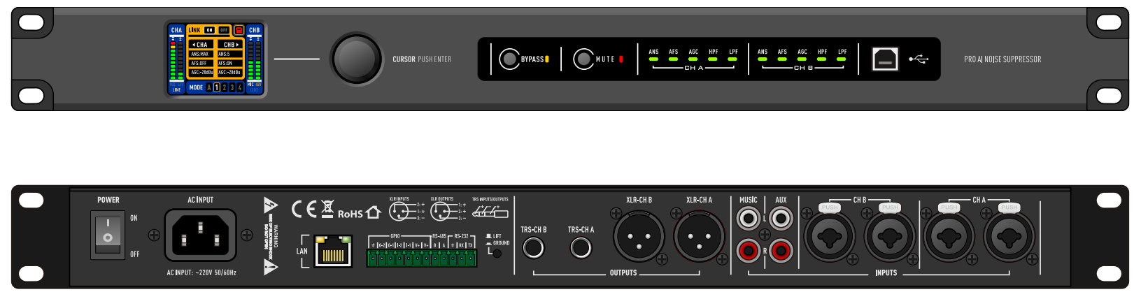 ★核心 AI 处理,智能净化语音,自适应声场控制,新一代现场声学智能AI降噪语音处理工具。